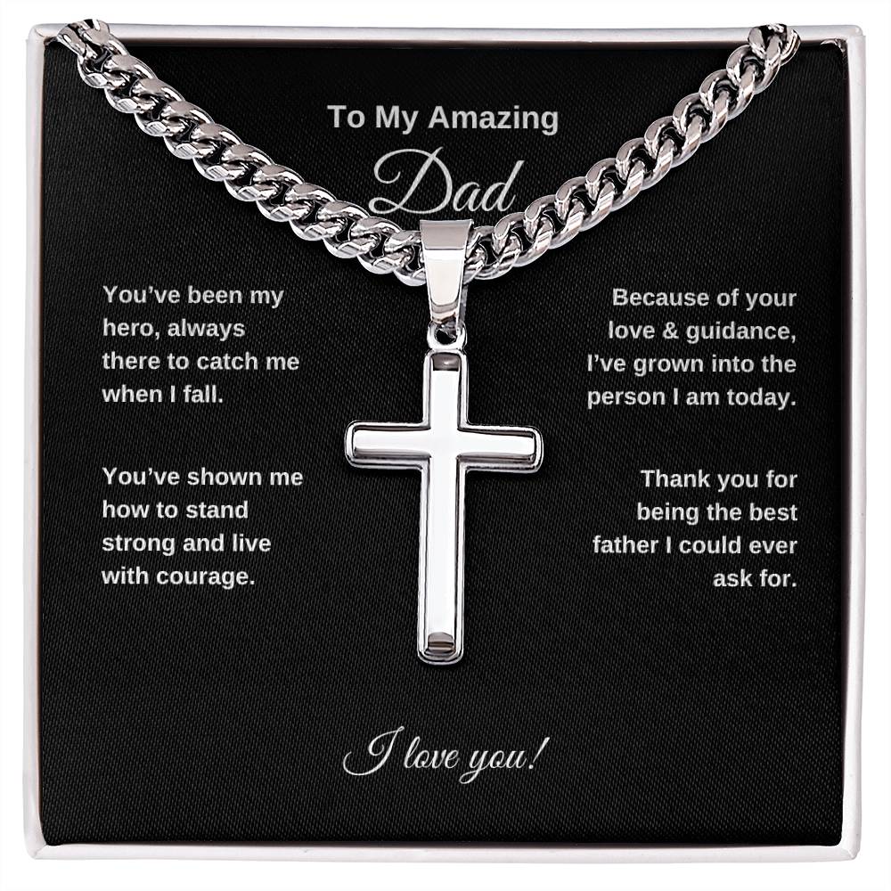 To My Amazing Dad ~ Cuban Chain with Artisan Cross Necklace